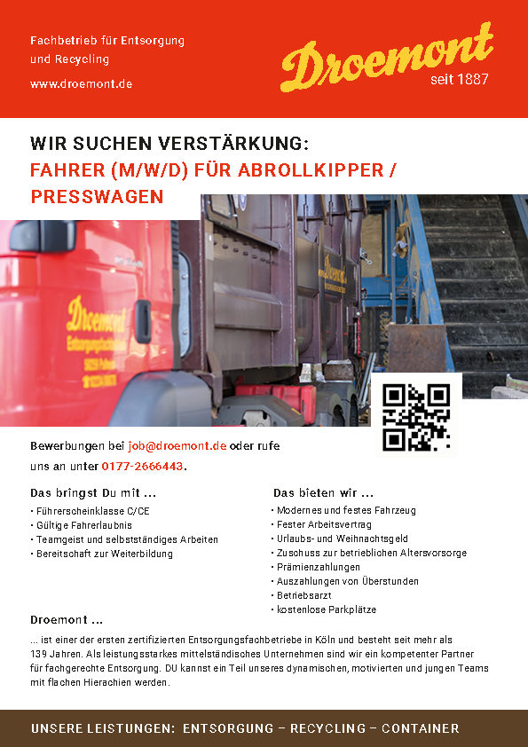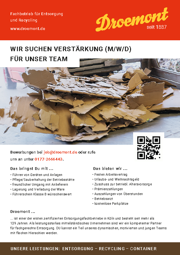 Sie suchen eine abwechslungsreiche Tätigkeit mit Zukunftsperspektive? Als führender Entsorgungsbetrieb bieten wir Ihnen ein familiäres Arbeitsumfeld, vielfältige Aufgaben und gute Entwicklungsmöglichkeiten.